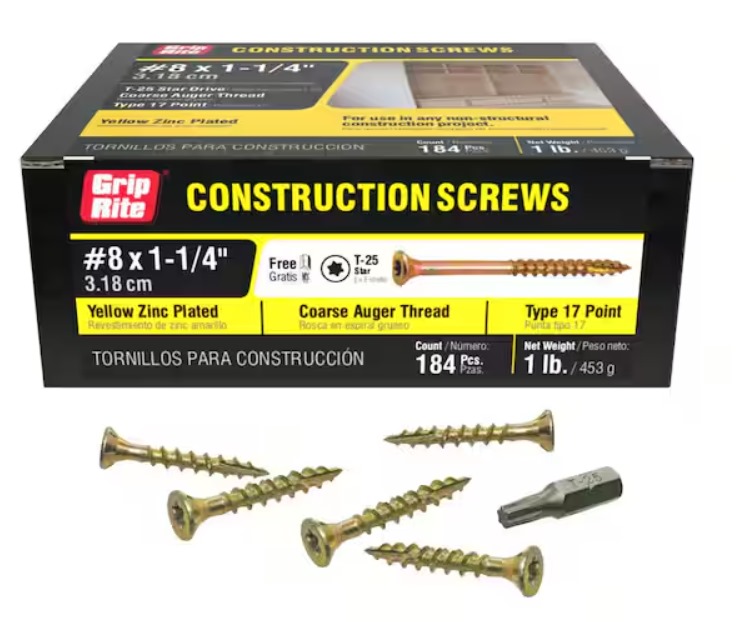 #8 x 1-1/4 in. Star Drive Dual Flat Head Coarse Thread Construction Screws 1 lb. Box